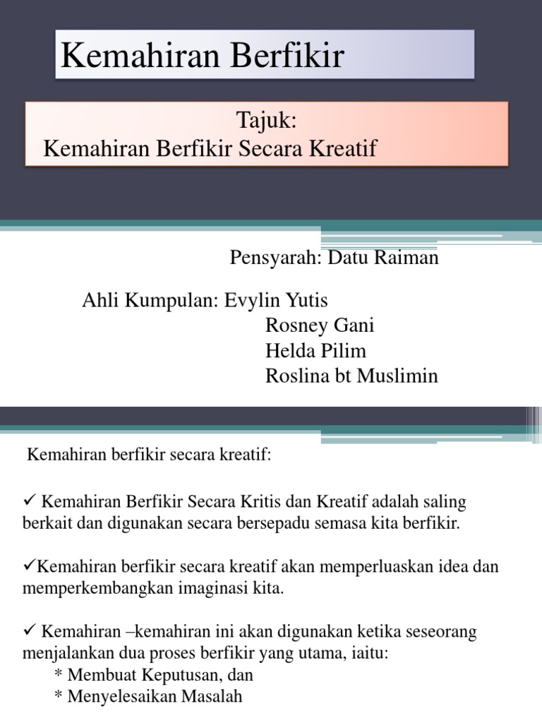 Kemahiran Berfikir Secara Kritis Dan Kreatif