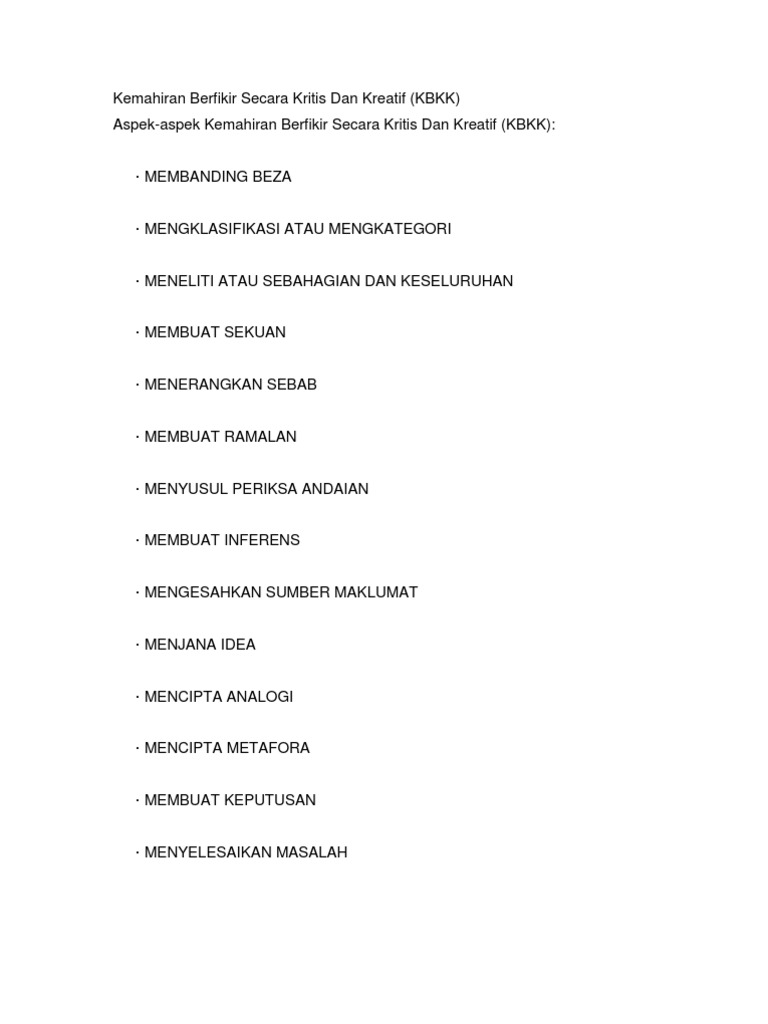 Kemahiran Berfikir Kritis Dan Kreatif Pdf Document