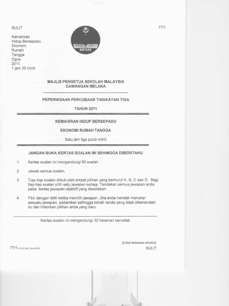 Sulit 76 1 Kemahiran Hidup Bersepadu Percubaan Pmr 2012 1 Jam