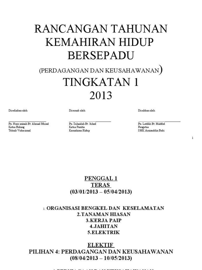 Rancangan Pengajaran Tahunan Khb Perdagangan Keusahawanan Tingkatan 2 Pdf Document