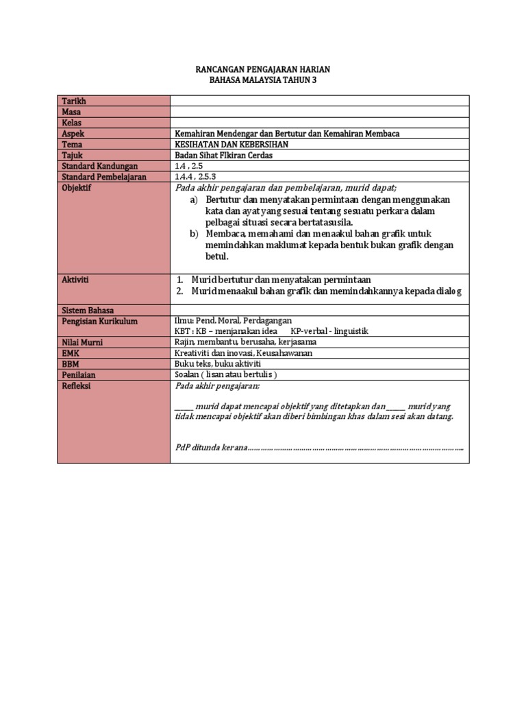Rph Tahun 3 Kssr Rancangan Mengajar Tahun 3 Bahasa Malaysia By Said Mohd Fuzi Flipsnack