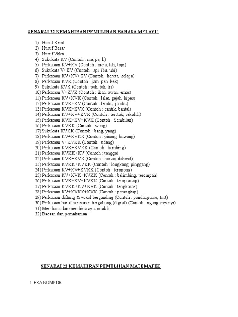 Senarai 32 Kemahiran Pemulihan Bahasa Melayu Doc
