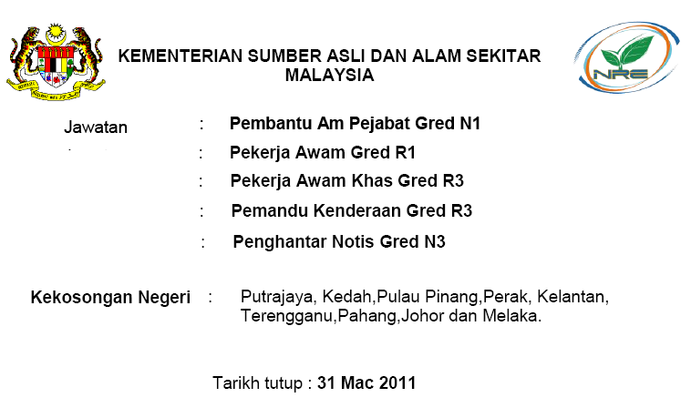 Jawatan Kosong Di Kementerian Sumber Asli Dan Alam Sekitar Malaysia Kekosongan Seluruh Negara Jobcari Com Jawatan Kosong Terkini