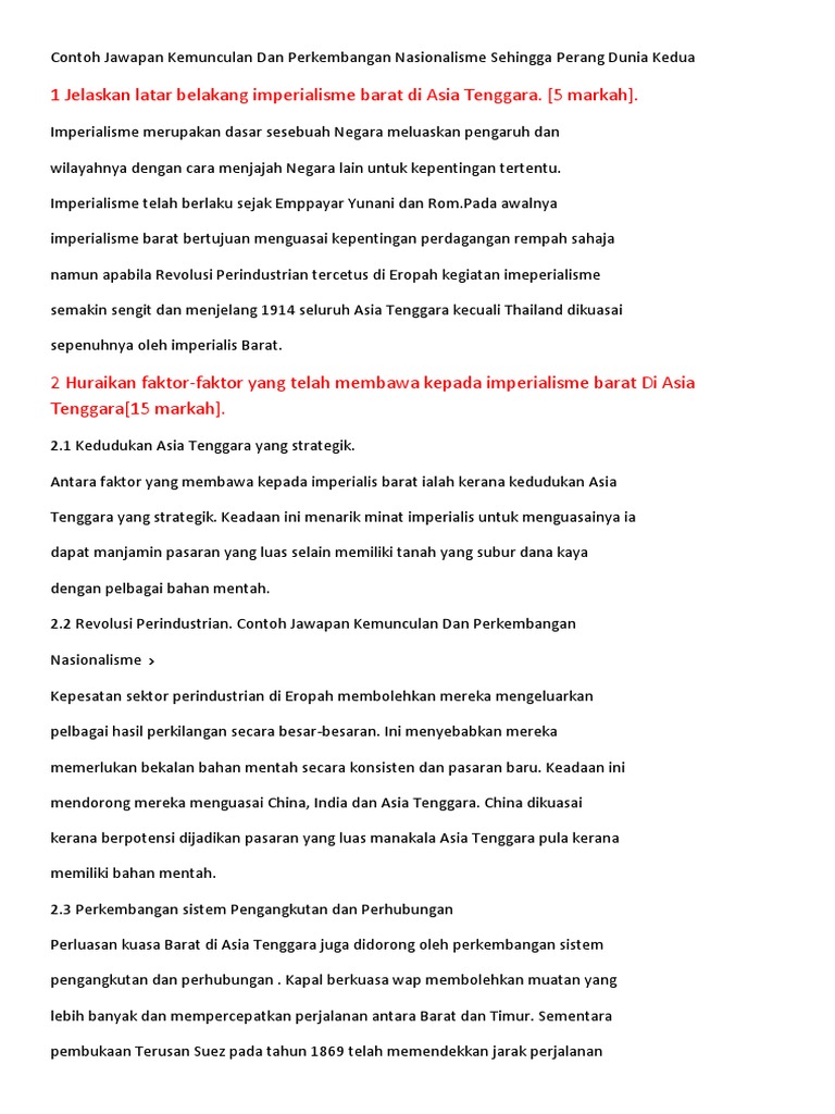 Contoh Jawapan Kemunculan Dan Perkembangan Nasionalisme Sehingga Perang Dunia Kedua