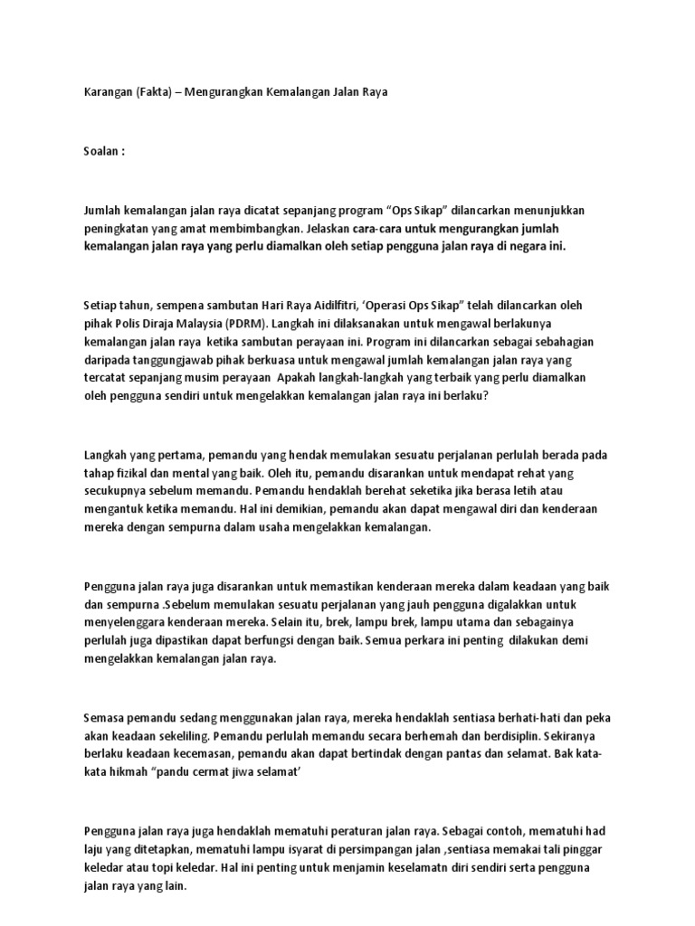 Karangan Docx Langkah Langkah Mengurangkan Kemalangan Jalan Raya Langkah Yang Boleh Dilakukan Untuk Mengurangkan Kemalangan Jalan Raya Adalah Dengan Course Hero