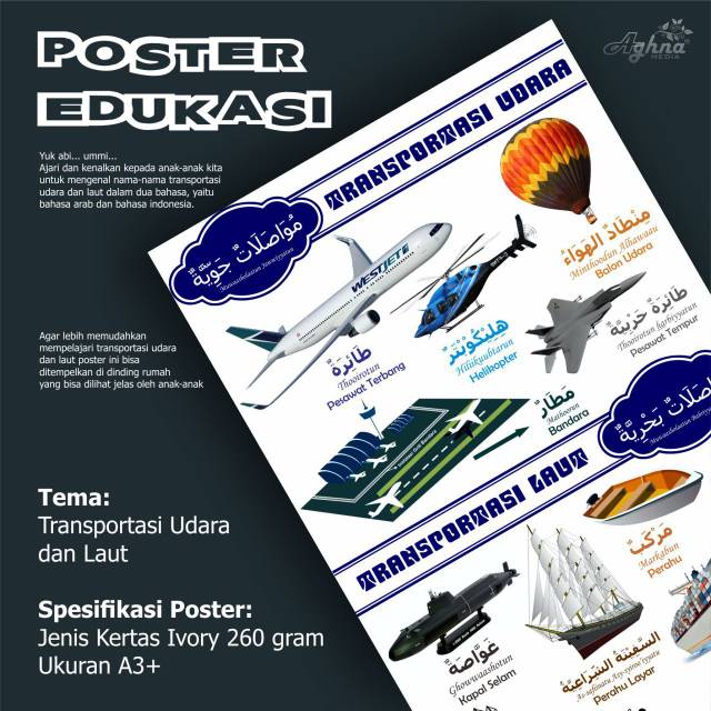 Poster Edukasi Mengenal Transportasi Darat Laut Udara Dalam Bahasa Arab Indonesia Desain Menarik Shopee Indonesia