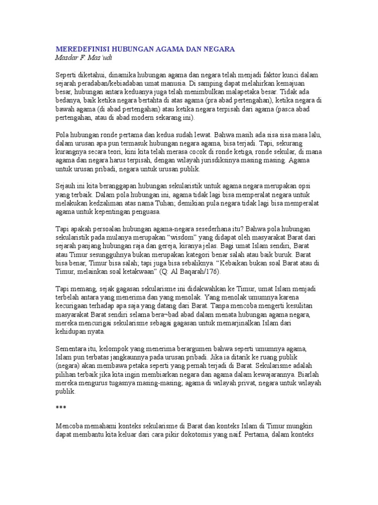 Meredefinisi Hubungan Agama Dan Negara