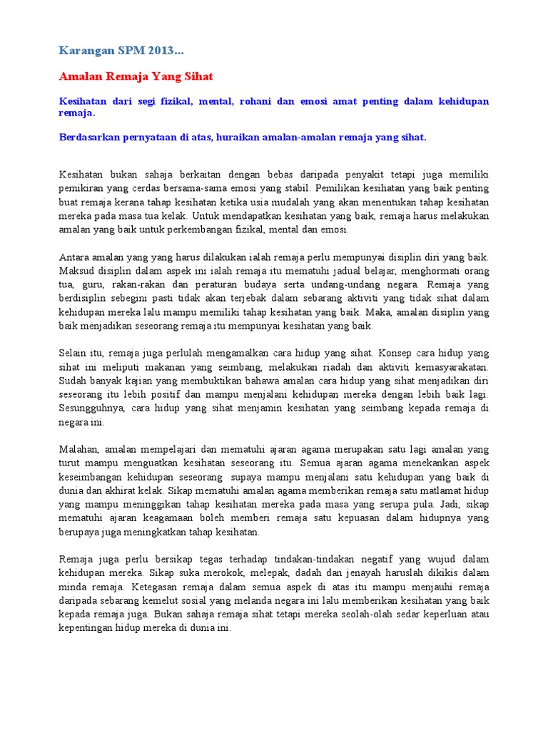 Amalan Remaja Yang Sihat Karangan Spm 2013