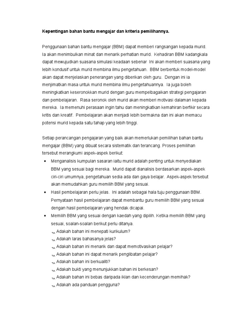 Kepentingan Bahan Bantu Mengajar Dan Kriteria Pemilihannya