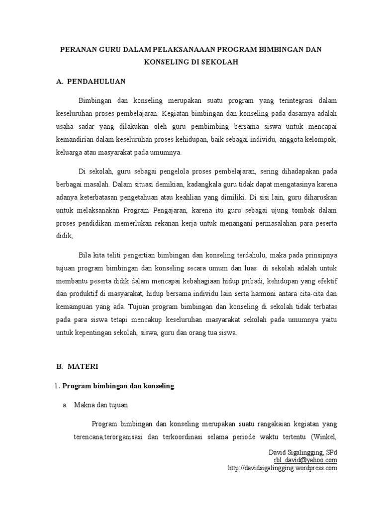 5 Peranan Guru Dalam Pelaksanaaan Program Bimbingan Dan Konseling Di Sekolah
