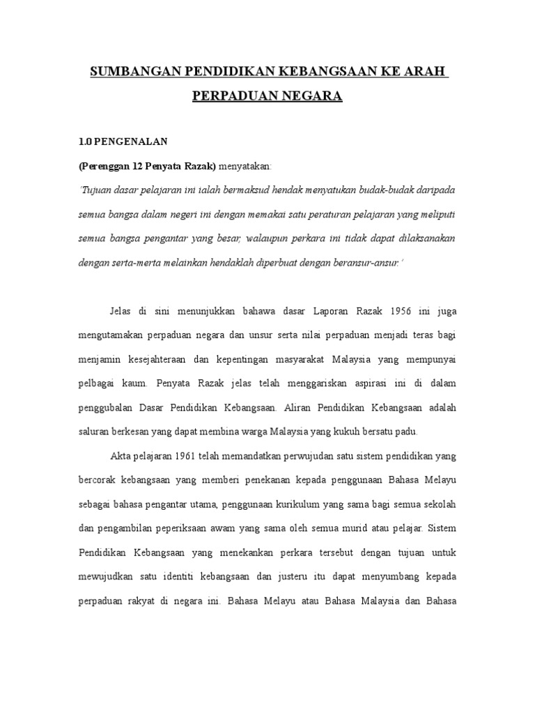 Sumbangan Pendidikan Kebangsaan Ke Arah Perpaduan Negara