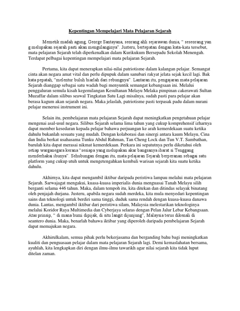 Kepentingan Mempelajari Mata Pelajaran Sejarah Dalam Kalangan Generasi Muda Docx Document