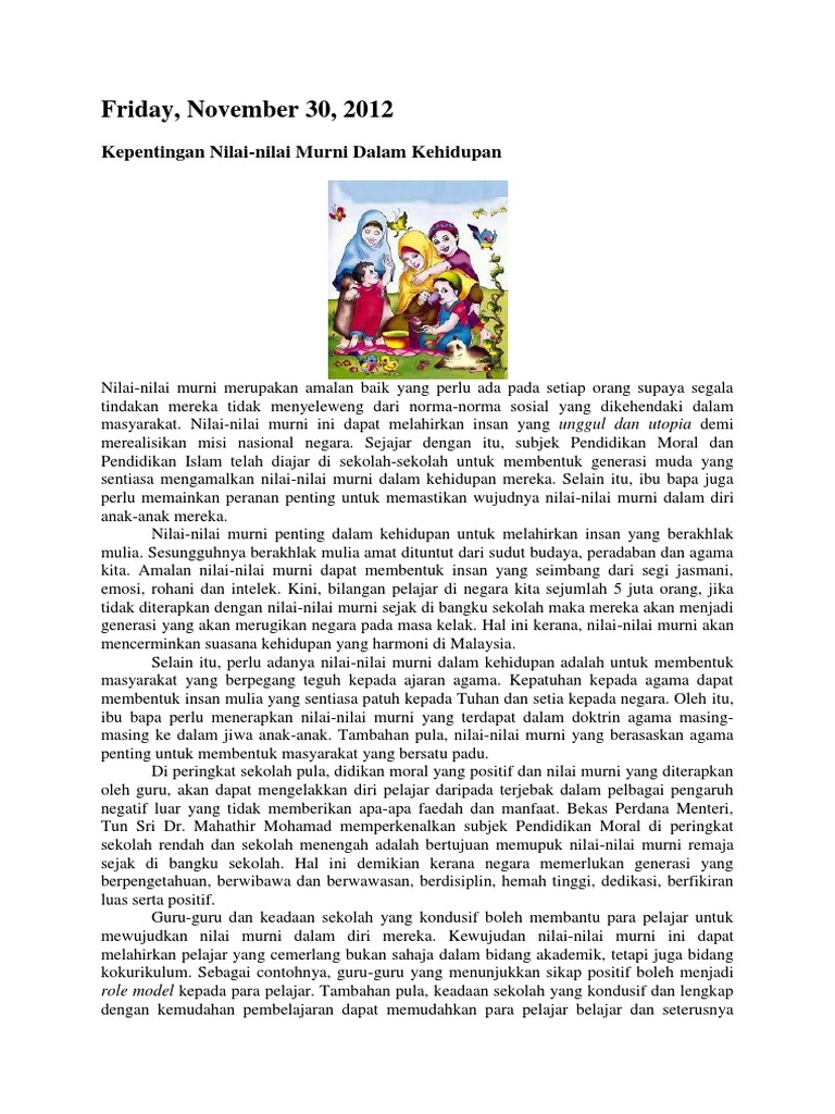 Notes For Study Kepentingan Mengamalkan Nilai Nilai Murni Dalam Kehidupan