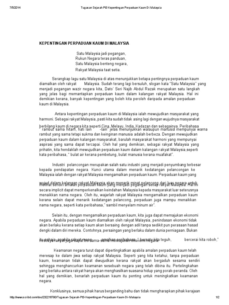Contoh Karangan Kepentingan Perpaduan Kaum Di Malaysia Docx Contoh Karangan Kepentingan Perpaduan Kaum Di Malaysia 1 Malaysia Slogan Yang Telah Course Hero