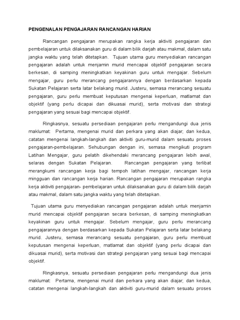 Ilmu Pendidikan Kepentingan Rancangan Pengajaran Harian