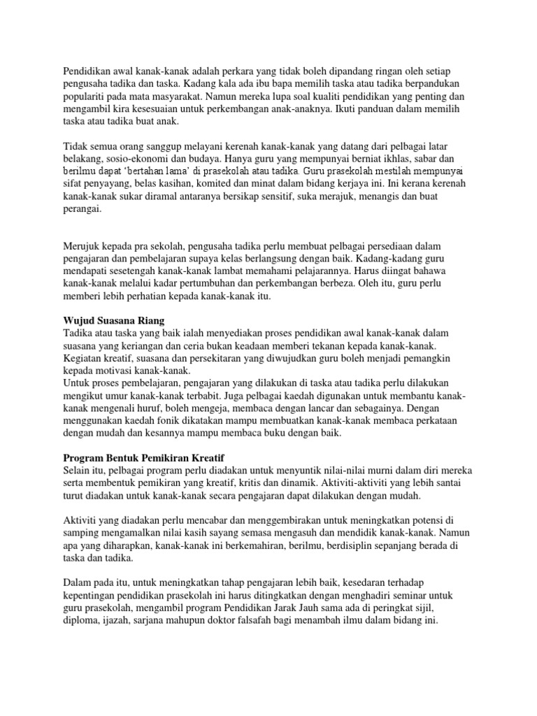 Doc Pendidikan Awal Kanak Kanak Di Malaysia Zahirul Khairul Academia Edu