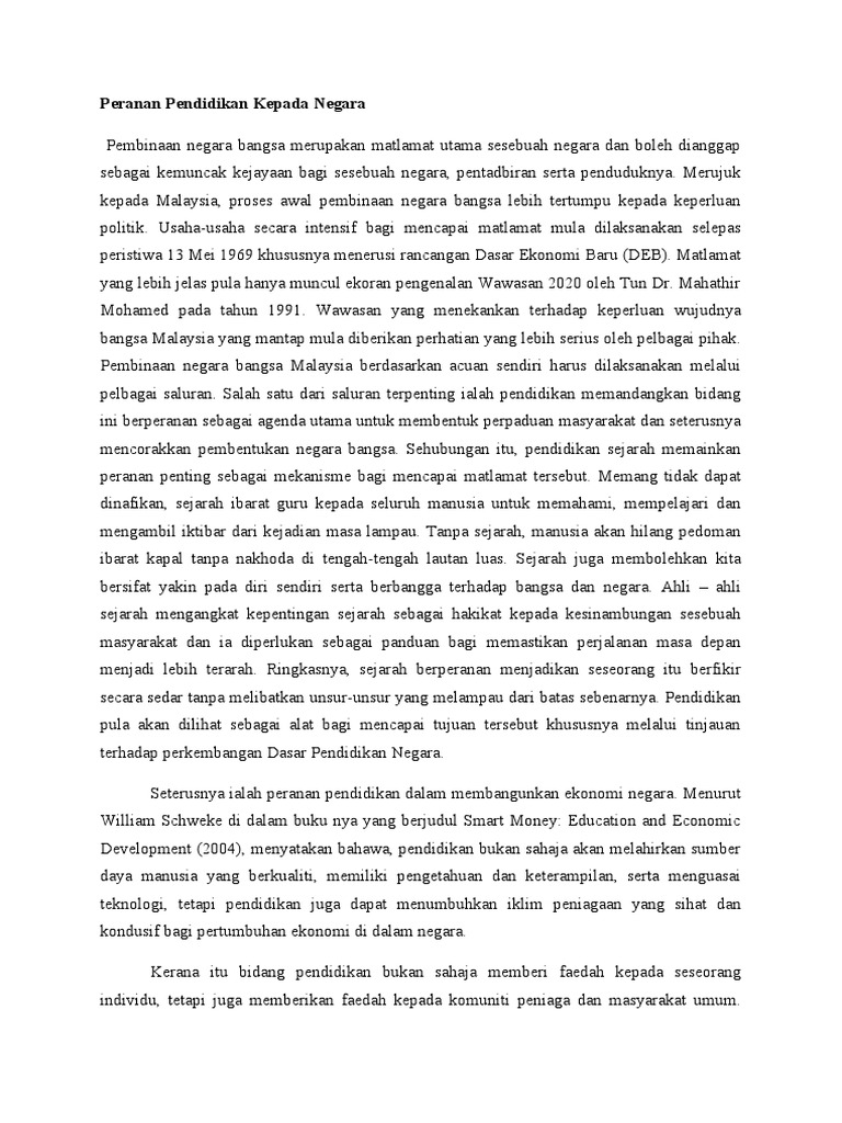 Peranan Pendidikan Kepada Negara Hud