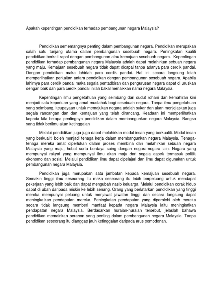Kepentingan Pendidikan Terhadap Pembangunan Negara Malaysia