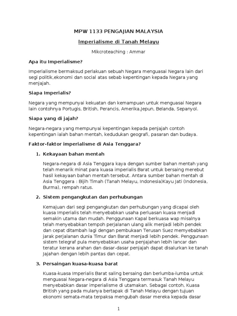 Pengajian Malaysia Disember 2017 Pendudukan Kuasa Asing Di Tanah Melayu