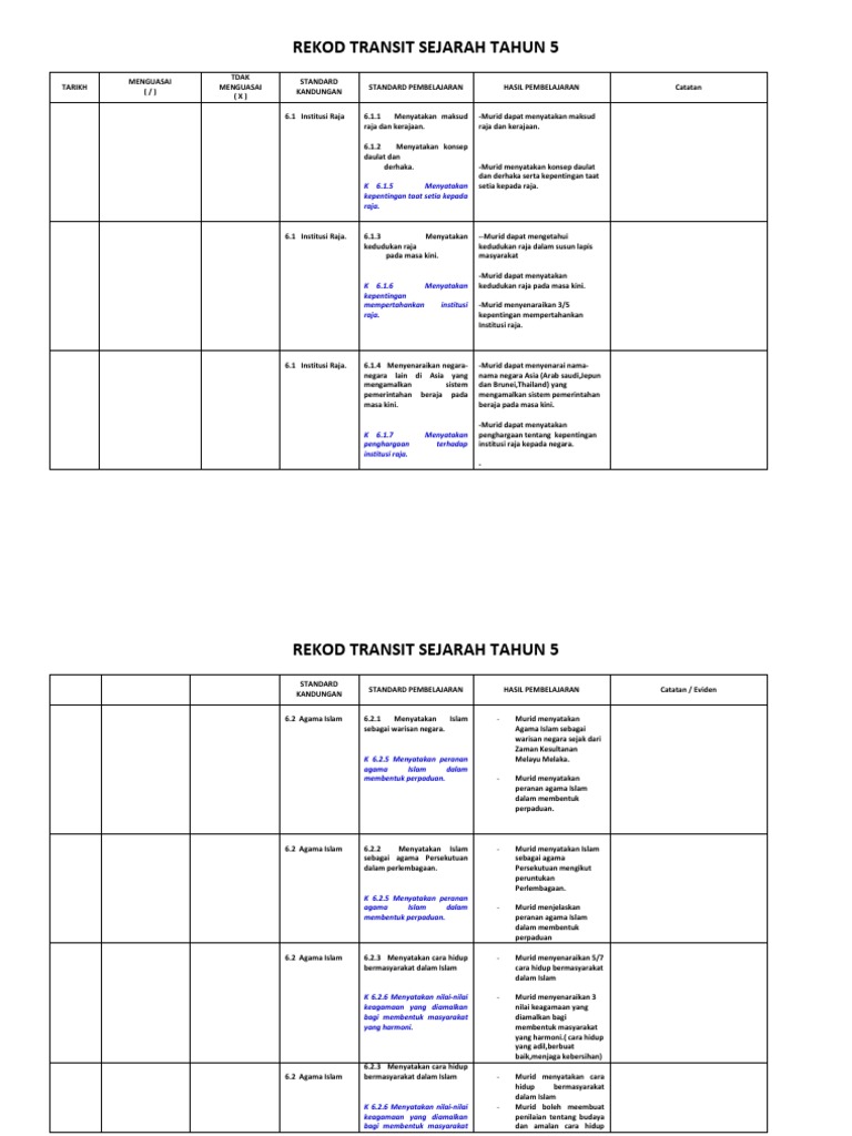 Rekod Transit Sejarah Tahun 5 K 6 1 5 Menyatakan Kepentingan Taat Setia Kepada Raja