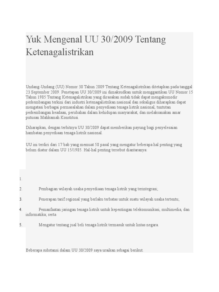 Yuk Mengenal Uu 30 2009 Tentang Ketenagalistrikan