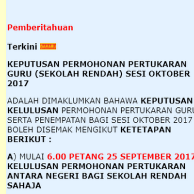 Pengalaman Berjaya Mohon Egtukar Guru Sesi Jun 2017 Blog Cik Matahariku