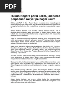 Rukun Negara Pemacu Kepada Perpaduan Kaum Pakar Bahasa Universiti Putra Malaysia