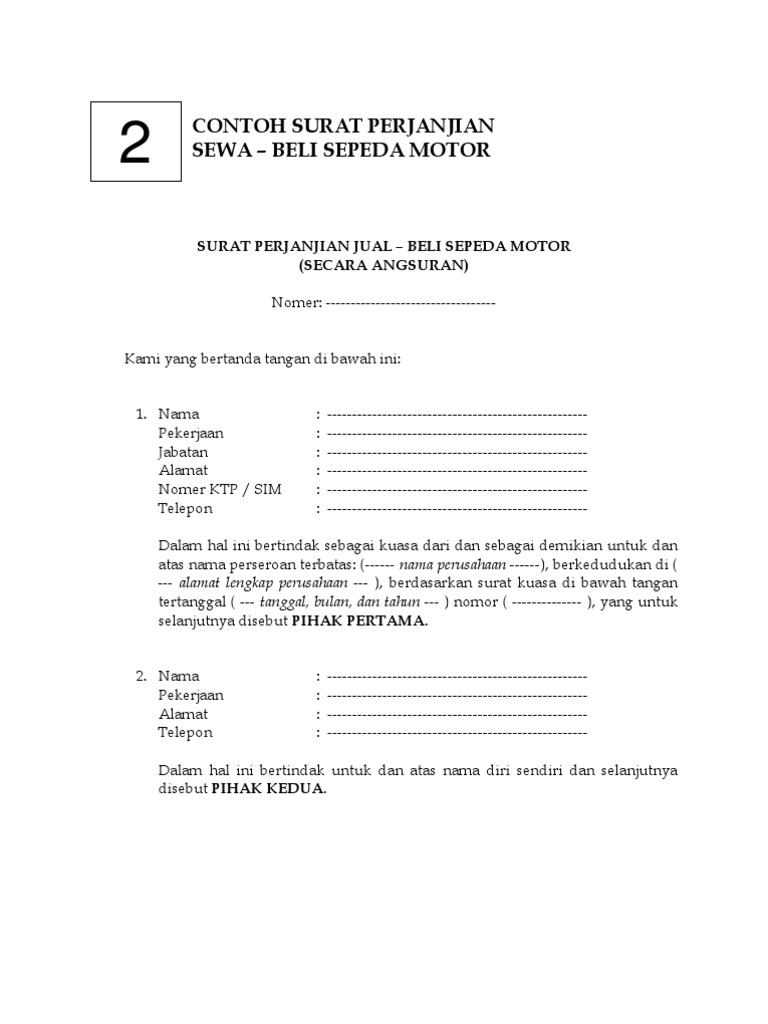 Contoh Surat Perjanjian Sewa Beli Sepeda Motor