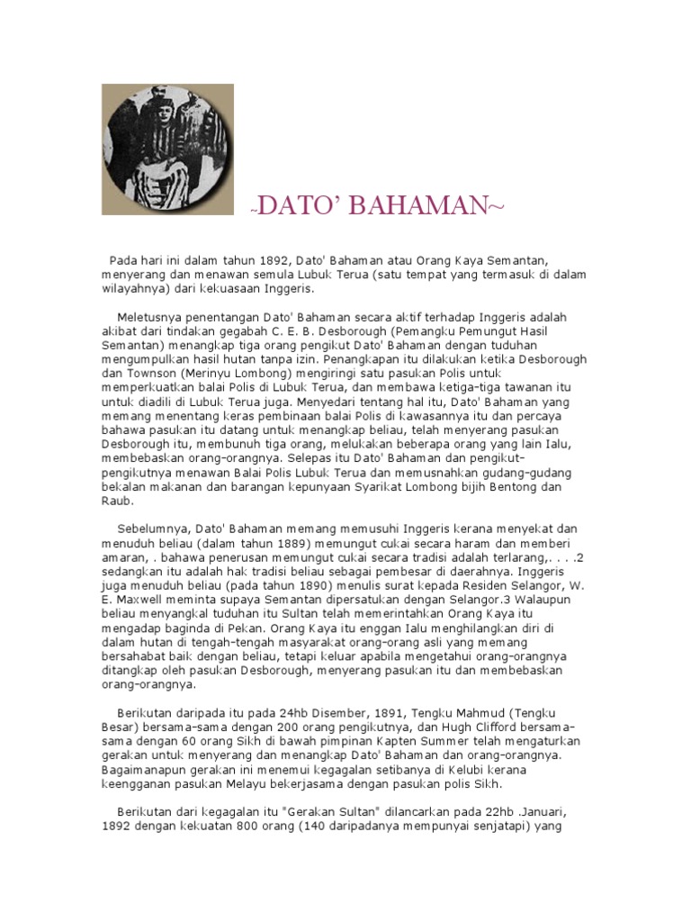 Pengajian Malaysia Latar Belakang Datuk Bahaman