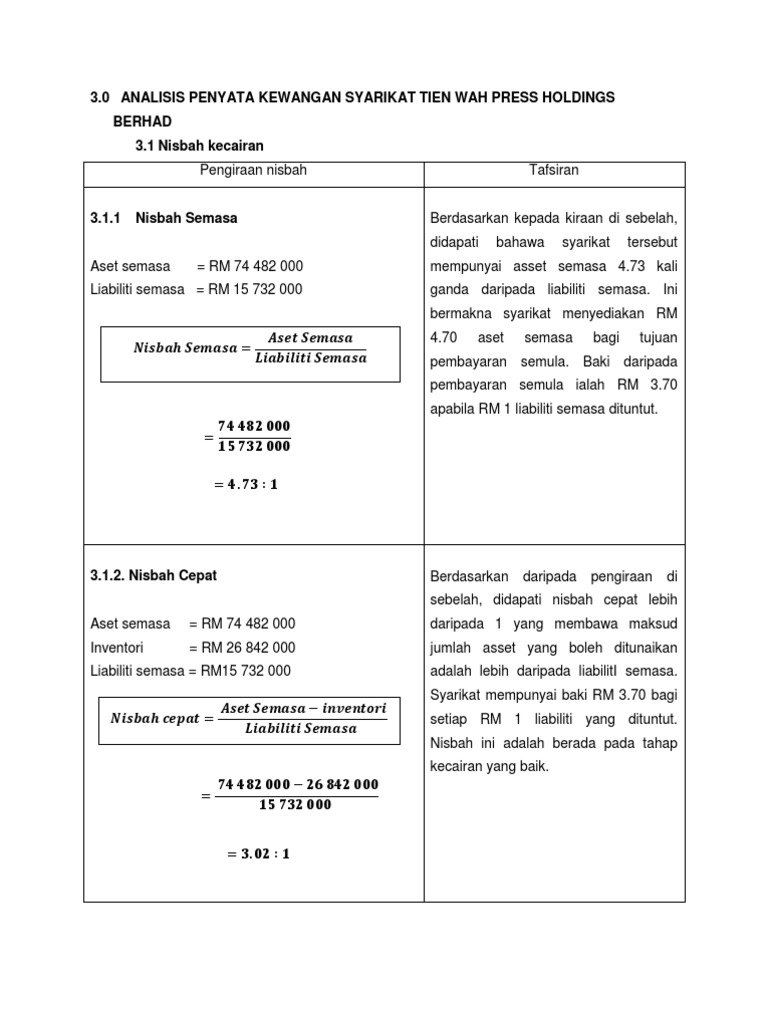 Kerja Kursus Pengajian Perniagaan Nisbah Kewangan