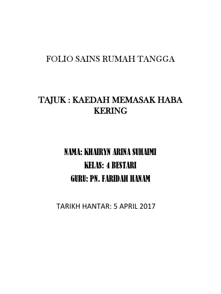 Kerja Kursus Sains Rumah Tangga Tingkatan 5 2020