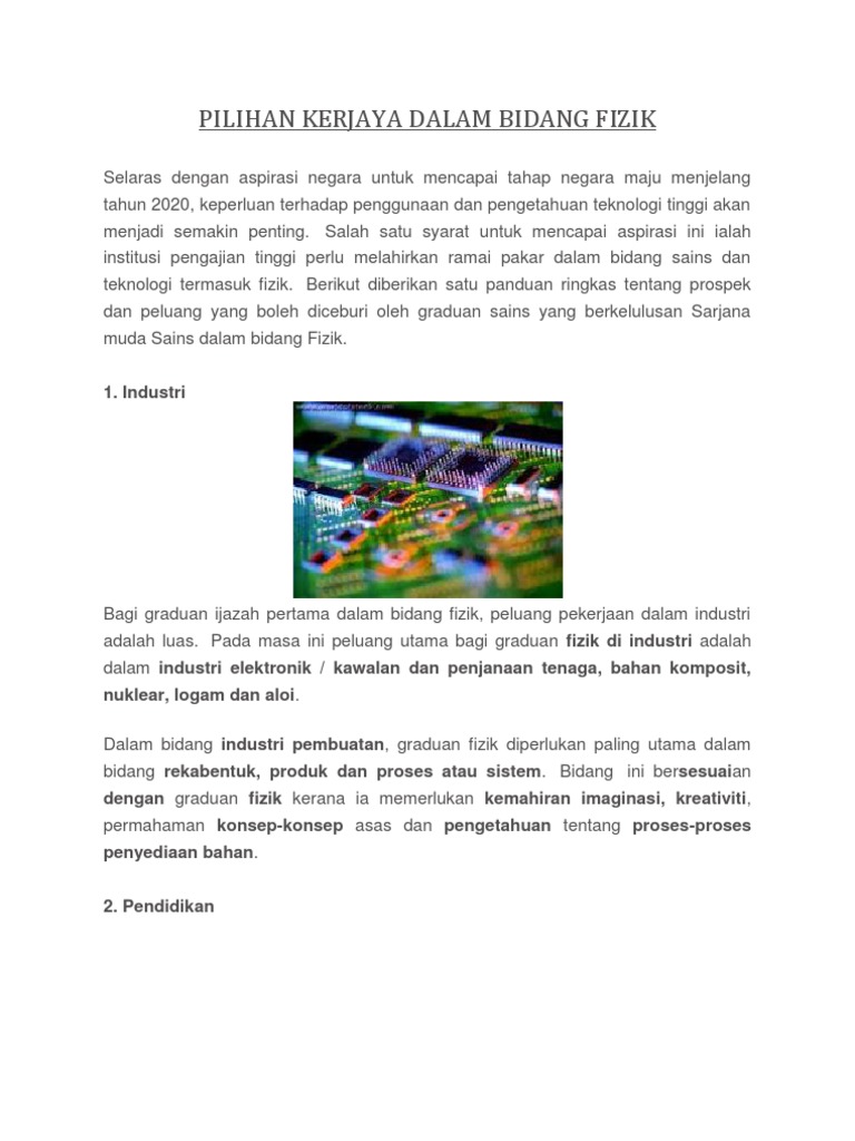 Explore Your Career Kerjaya Dalam Bidang Fizik