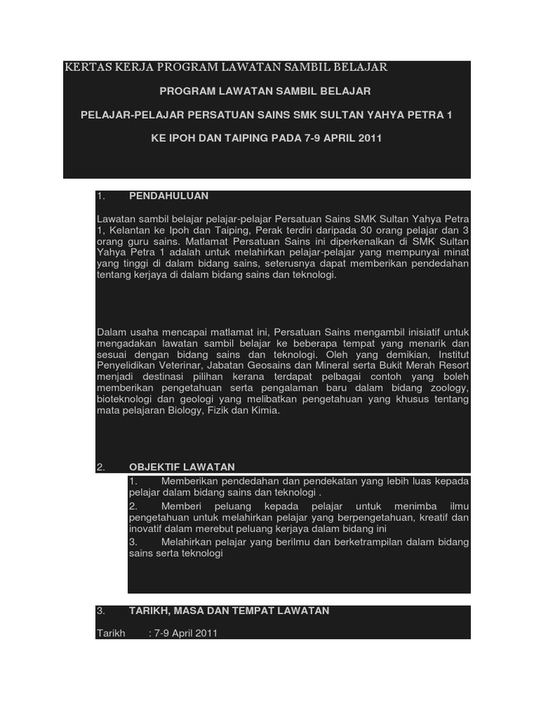 Kertas Kerja Program Lawatan Sambil Belajar