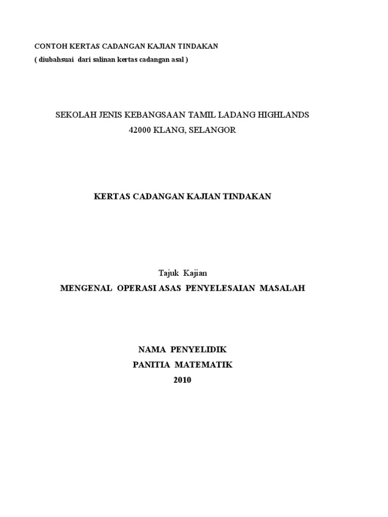 Kertas Cadangan Kajian Tindakan Matematik Pdf Free Download