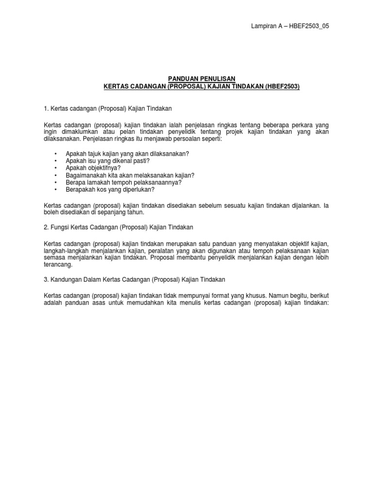 Lampiran A Hbef2503 05 Panduan Penulisan Kertas Cadangan Kajian Tindakan