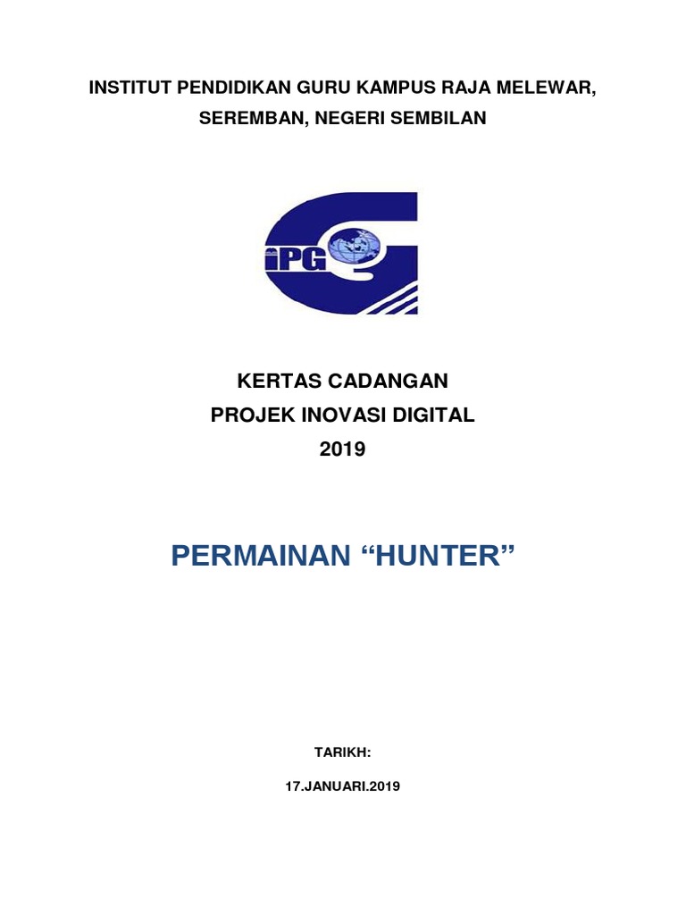 P Ermainan Hunter Kertas Cadangan Projek Inovasi Digital 2019