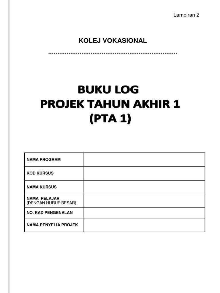 Contoh Buku Log Projek Tahun Akhir Kolej Vokasional