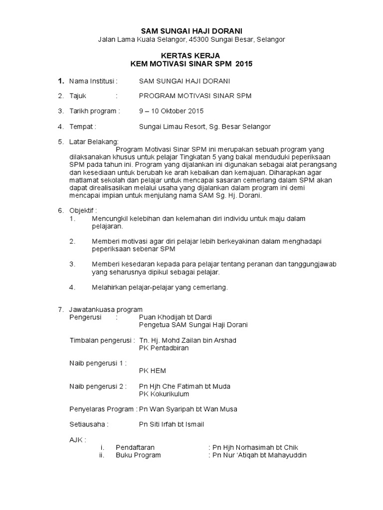 Doc Kertas Kerja Program Suntikan Motivasi Tingkatan 2 Hingga 5 Sekolah Menengah Kebangsaan Panji 2006 Aizuddin Dien Academia Edu