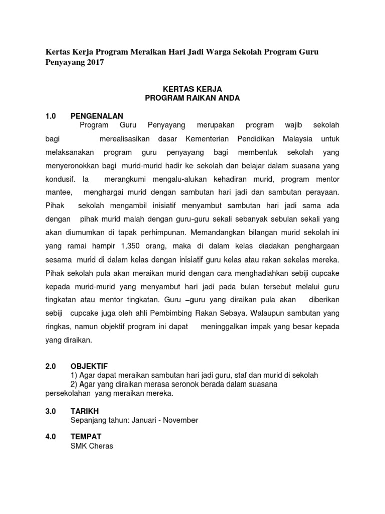 2016 Kertas Kerja Program Guru Penyayang Sambutan Hari Jadi Jan Jun Doc