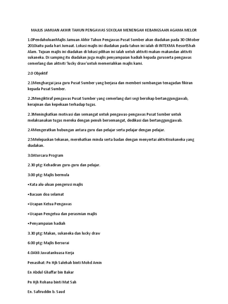 2 0 rasional memberi penghargaan kepada para pengawas dan meraikan keberadaan para pengawas tahun 6 sesi 2016. Related posts to contoh kertas kerja jamuan akhir tahun contoh kertas kerja jamuan akhir tahun 2018 01 31t16 19 00 08 00 rating. 39000 tanah rata cameron highlands. 3 0 matlamat mengeratkan hubungan antara ahli.