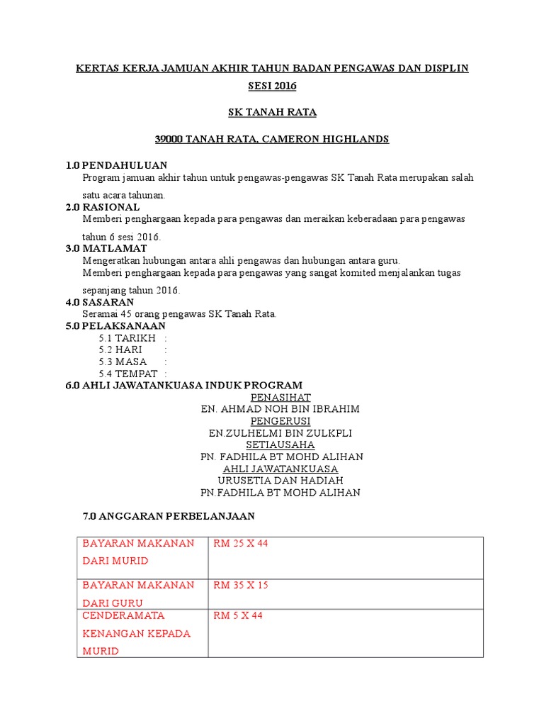 Kertas Kerja Majlis Jamuan Akhir Tahun Tujuan Kertas Kerja Ini Disediakan Adalah Untuk Memohon Ia Juga Merupakan Majlis Jamuan Perpisahan Tahunan Peringkat Jabatan Syariah Yang Pdf Document