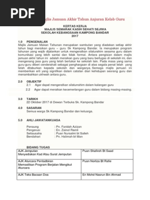 Kertas Kerja Hari Keluarga Jamuan Akhir Tahun Pdf Document