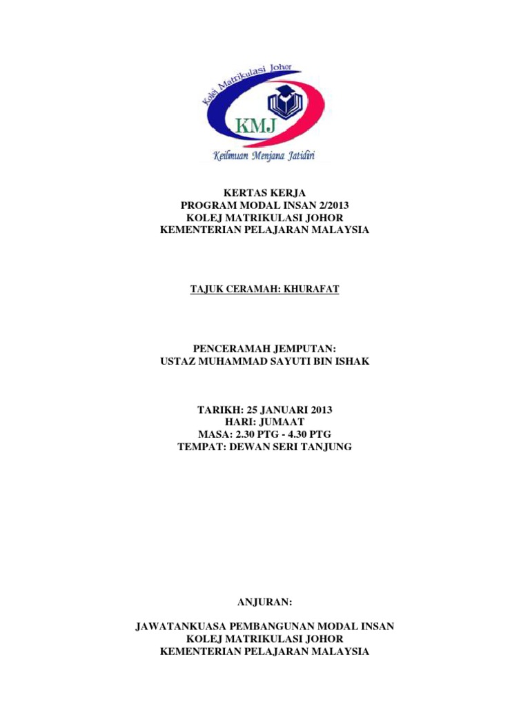 Contoh Kertas Kerja Jemputan Penceramah Jawkosa