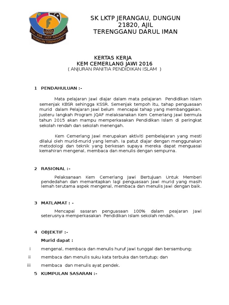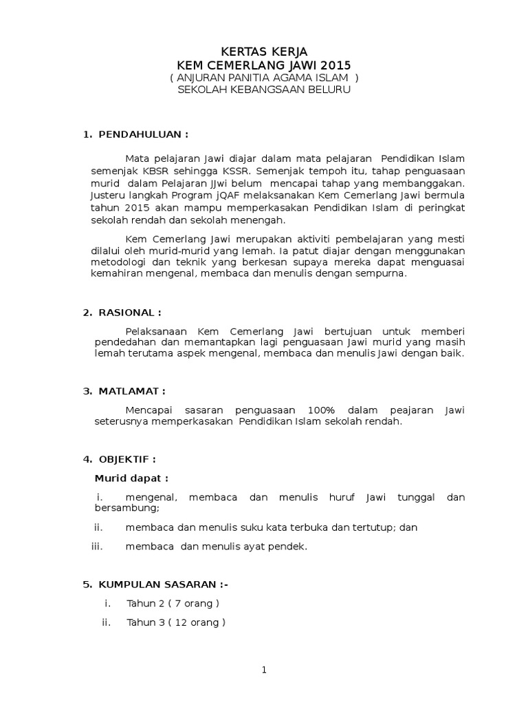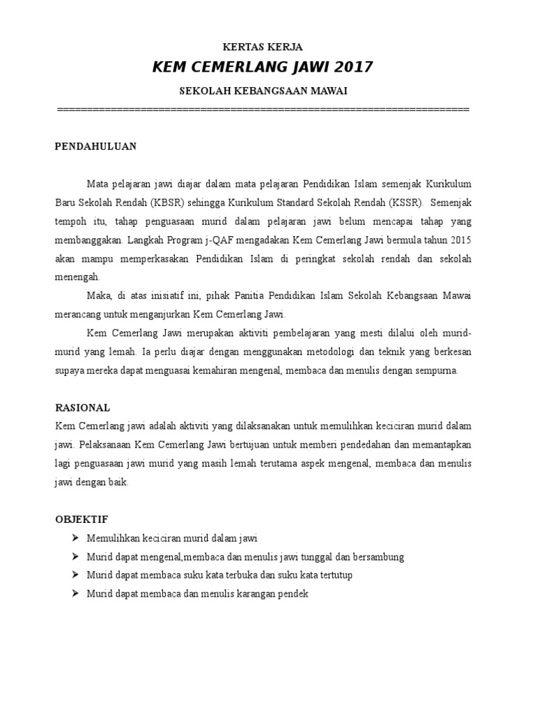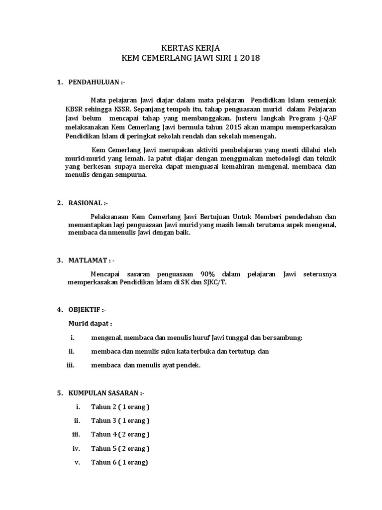 Kertas Kerja Kem Cemerlang Jawi Docx