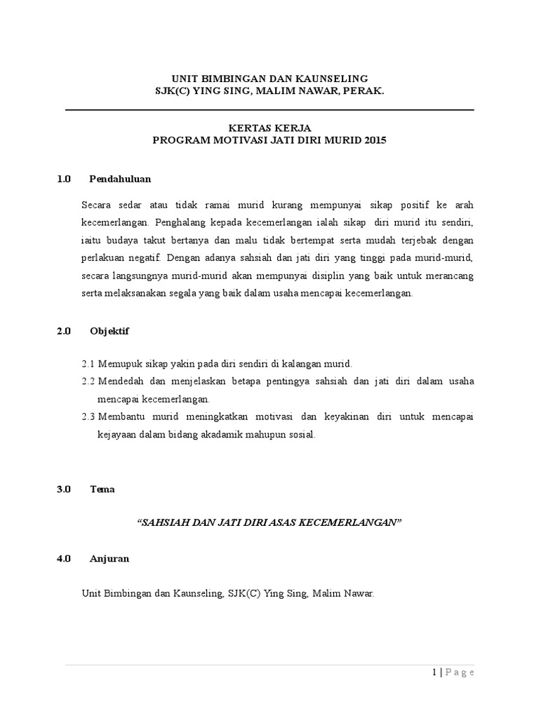 Kertas Kerja Program Kem Jati Diri Doc Document