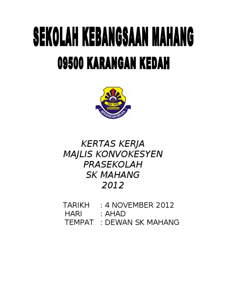 Kertas Kerja Konvokesyen Prasekolah Doc Document