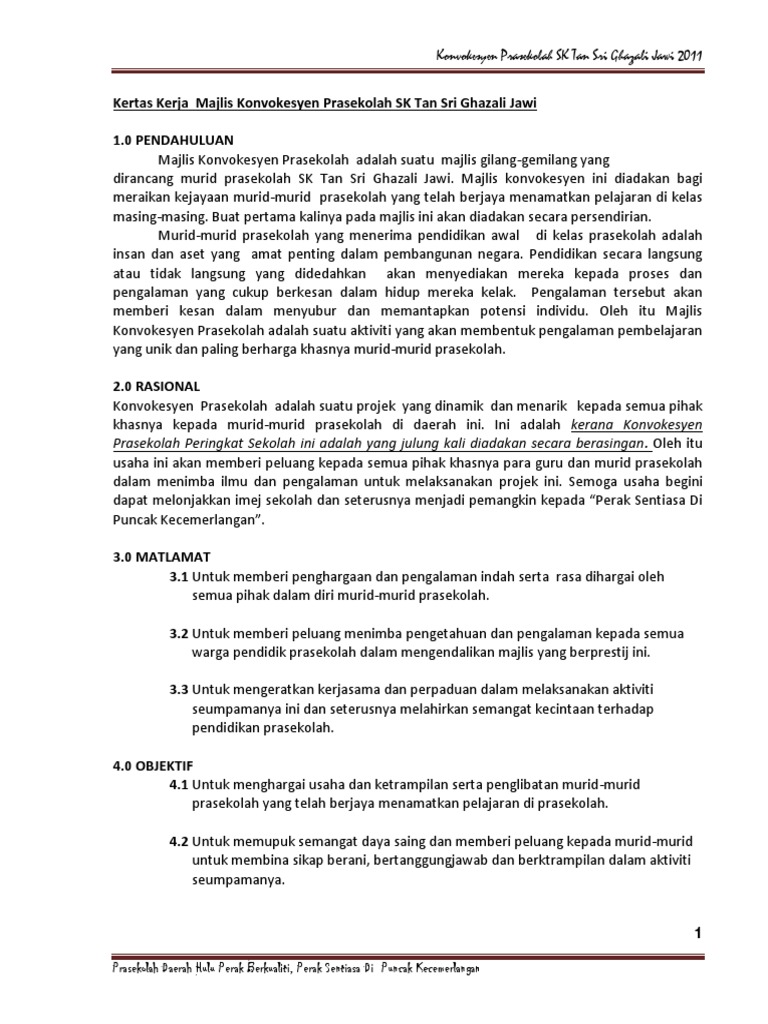 Kertas Cadangan Majlis Konvokesyen Prasekolah Sk Tan Sri Ghazali Jawi