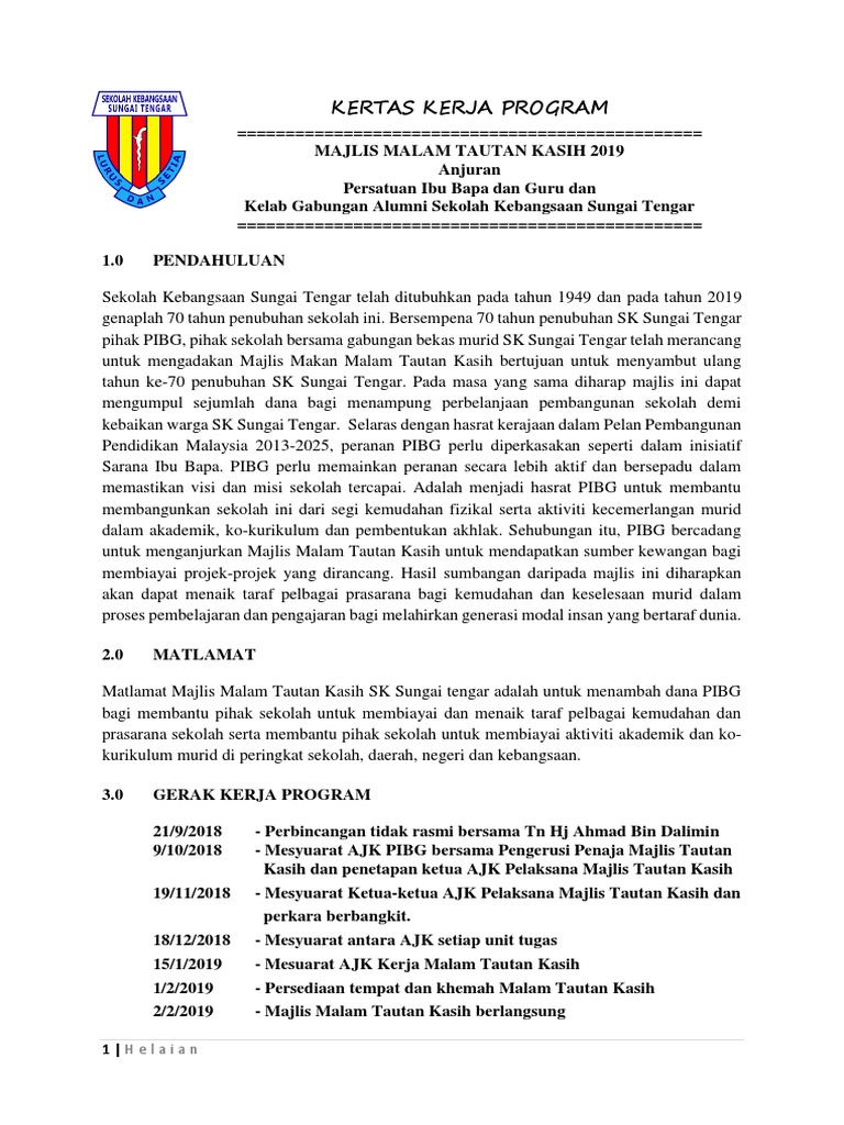 Contoh Kertas Kerja Program