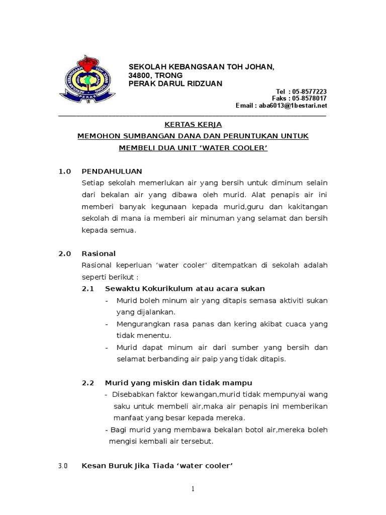 Contoh Kertas Kerja Mohon Sumbangan Kewangan Pibg