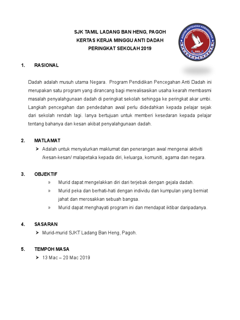 Doc Kertas Kerja Minggu Anti Dadah Sekolah Kebangsaan 2 Iris Qaisara Academia Edu